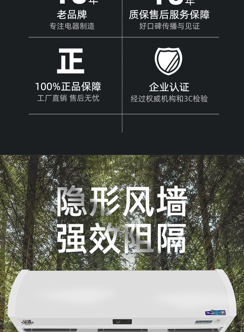 小机身大动力,采用离心蜗轮,高风速更静音。全新蜗壳斜导风设计(实用新型专利:201721337682.0),减少出风口盲点,隔断效果更出众。高速纯铜电机,性能优越,持续运行8000小时以上无故障